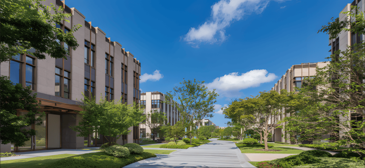 项目毗邻东郊宾馆,拥享优质绿色生态环境,悠享通达道路交通系统,尽享便利品质商务配套。基地呈正方形状,建筑物之间南北间距达到18-22米,东西间距在10米以上,布局上努力将地面空间让于绿化环境营造。建筑同时设计有大采光面的下沉庭院和空中屋顶花园,将高绿化率办公产品与东郊国宾别墅板块的生态概念结合。