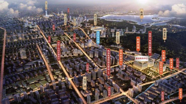 从紫创商务中心走出,沿古墩路往南不到300m,即可抵达地铁3号线古墩路B口,由此出发,3站黄龙体育中心、6站武林广场、7站直抵湖滨龙翔桥,杭州市心繁华生活唾手可得。再往远看,项目距地铁2号线丰潭路直线约1.8km,距机场快线五联站(在建)直线不过700m+,前者丰富了项目出行选择,后者则便捷直达火车东站、萧山国际机场,国内、国际商务出差能有稳定交通保障。