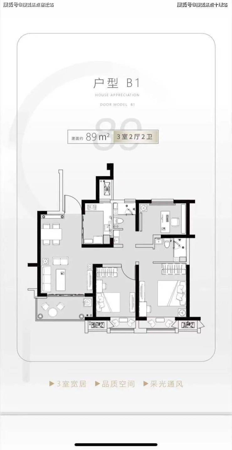 建滔以精益求精的态度打造约89m²的空间,真正实现了舒适型的3房两厅两卫布局,是建滔,对待空间利用率的苛求,和打造高舒适人居的初心。