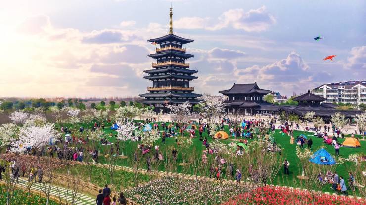 项目秉承非凡择址观,对望平湖文旅坐标——钟埭樱花公园,以平湖仅有的低密合院之作,辉映唐风雅韵,再现千年长安丽景。