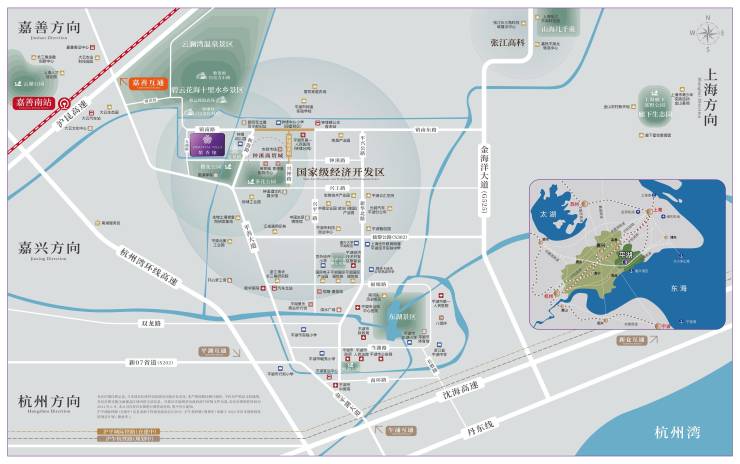 项目毗邻镇南路,连通平善大道,畅达一城繁华;更可快速接驳G60沪昆高速(直距距离4.8km)、嘉善南站(直距距离5.6km)等交通枢纽,实现一小时环沪通勤圈。·直线距离数据来源于百度地图