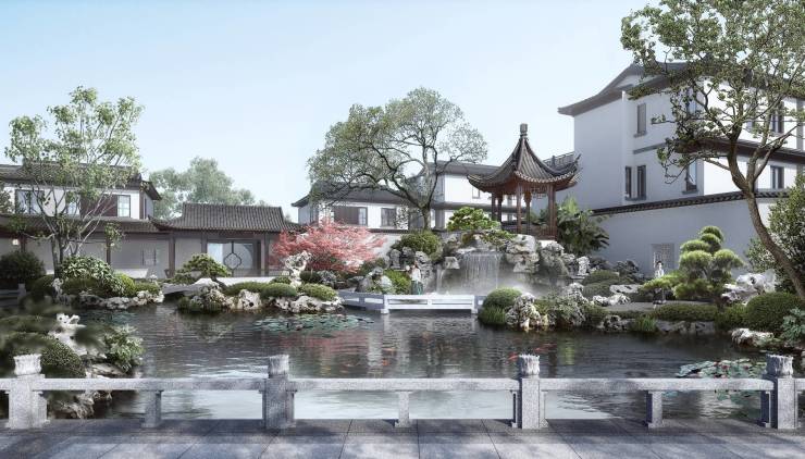 在园林设计上,鸿和·紫香缘汲取唐代诗人王维的造园巧思,以“引画入园·九境九感”为构园蓝本,将多重生活场景融入园林布局,实现“情”与“境”的交融与提升,步履之间尽享文化内涵和自然风光。