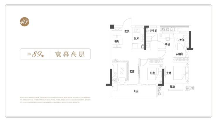 建面约89㎡三室两厅一卫