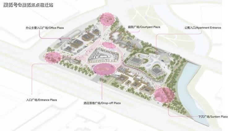 此外,场地借由毗邻钱塘江支流东风河的优势,引入自然绿色景观和水景,打造一个健康活力的社区环境。