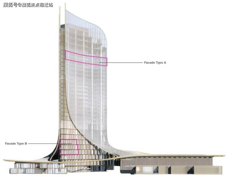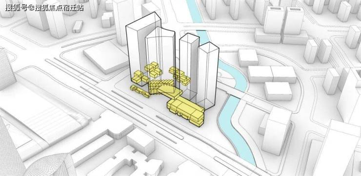 项目包含一栋酒店(安达仕酒店)和办公综合塔楼、一栋办公楼和两栋高端公寓塔楼,以及由会议中心、酒店宴会厅、商业、美术馆及社区配套组成的基底。
