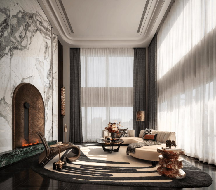 「墅厅大平层」地产名词释义:参照国际高阶居住产品分类体系,凡在城市大平层客厅上空采用挑空设计,带来远超普通大平层的空间气场与通透观感的产品形态,属于大平层品类的升级形态。