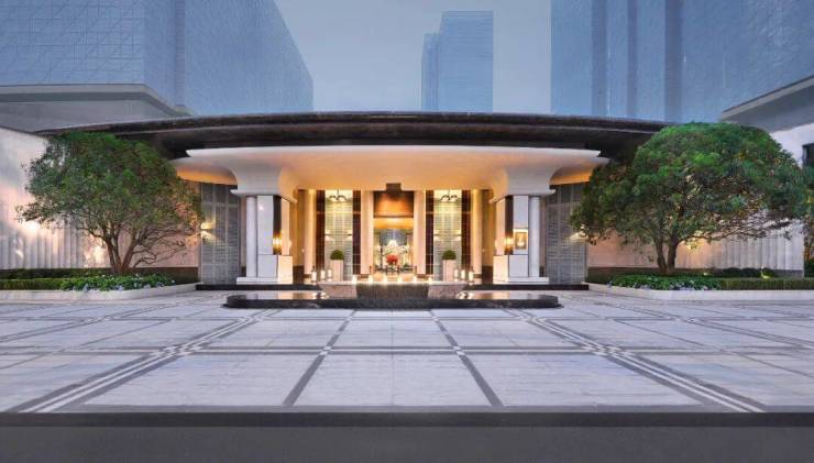 入口宽度达60米,设计灵感汲取自深圳安达仕酒店的精髓,选用宝格丽蓝石材、鎏金屋顶与卡里冰玉方柱,归家之旅犹如穿梭于艺术殿堂。