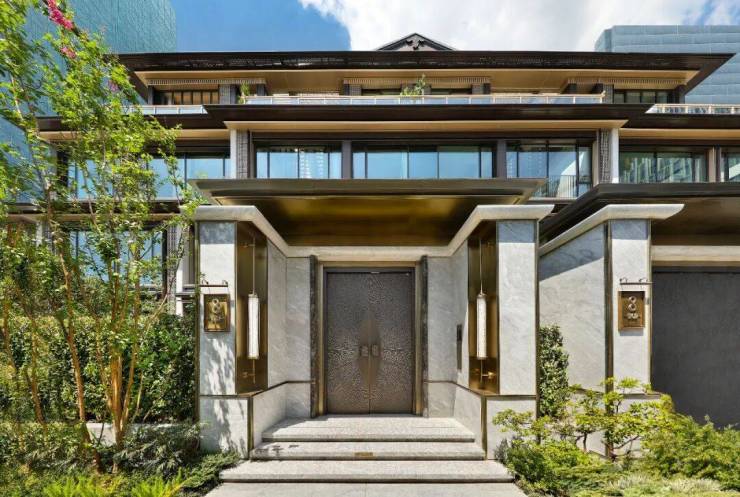 联排立面采用三段式设计,彰显威严大气;单檐歇山顶巧妙勾勒出天际轮廓。退台设计将浩渺星空引入怀抱,横向屋檐低垂,亲近大地。