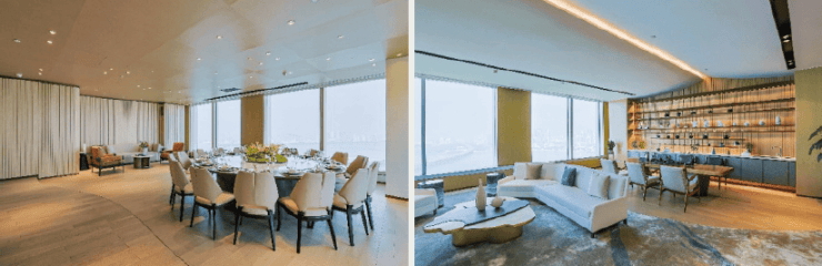天际花园,家庭聚会理想场所,一览云端前海湾景,茶室、私宴厅,私密会客洽谈空间,尽享专属贴心服务;灵动空间满足嘉湾业主日常休闲、商务会议、接待宴请等需求。