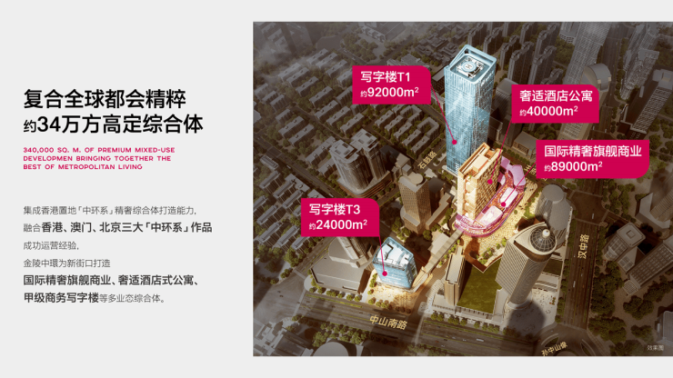 选择金陵中環,香港置地与您一起分享中環系独特的产品长期价值和城市地段端收益。