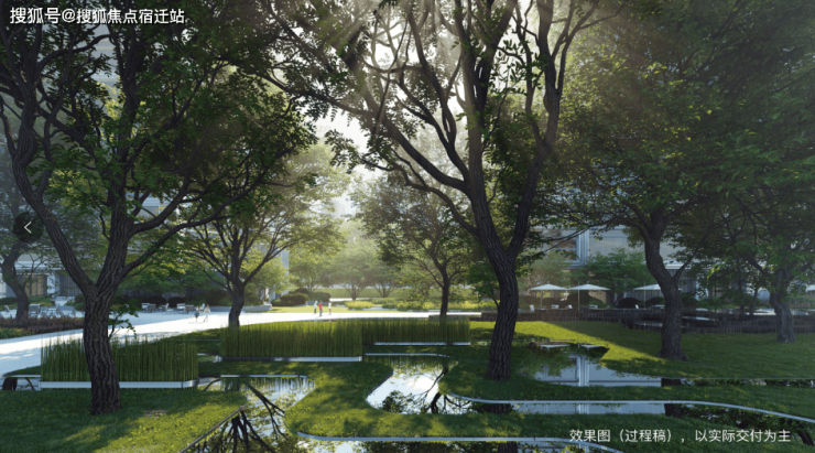 疗愈花园、轻氧草坪、林间步道等多个全龄活动场景嵌在了园林里,大面积水景蜿蜒其中,似江流,似白练。