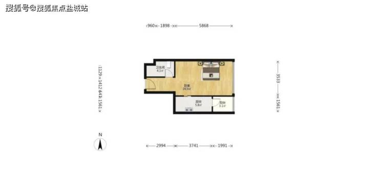 11户:58.39平,一房一厅,东北能看国金