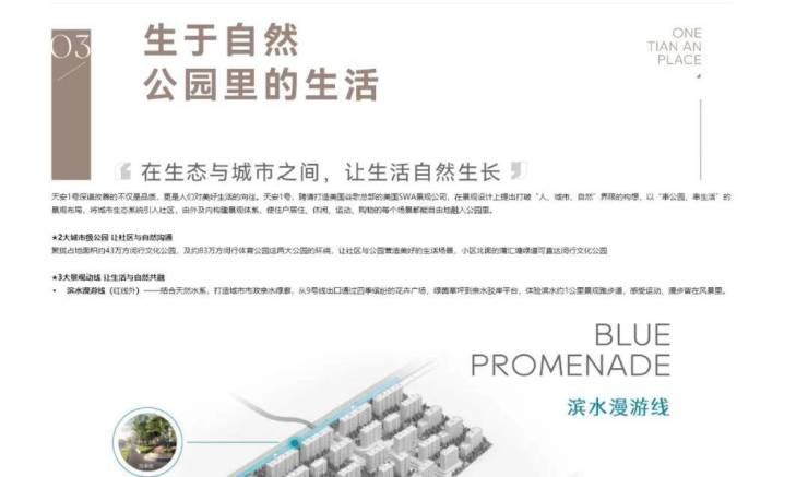 天安1号深谙改善的不仅是品质,更是人们对美好生活的向往。天安1号,聘请打造美国谷歌总部的美国SWA景观公司,在景观设计上提出打破“人、城市、自然”界限的构想,以“串公园、串生活”的景观布局,将城市生态系统引入社区,由外及内构建景观体系,使住户居住、休闲、运动、购物的每个场景都能自由地融入公园里。