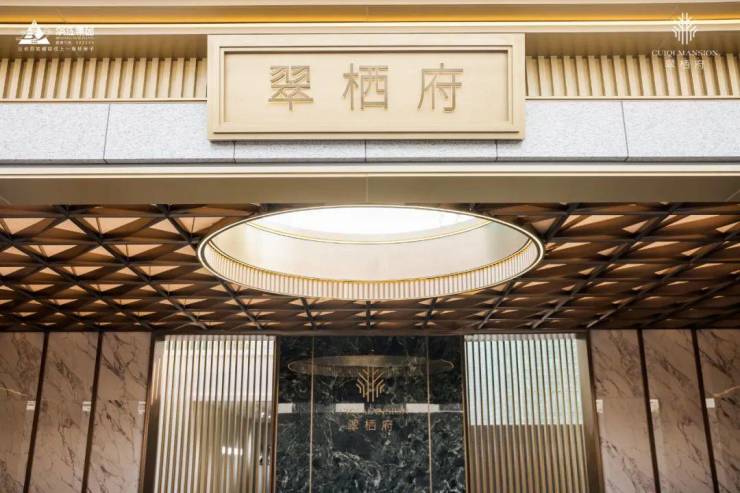 地下车库也让你眼见为实,地面划线是灰色、灰绿与橘黄的色调搭配,给人一种宁静感。车库入户大厅的界面感十足,一幅岩板抽象画,搭配暗金色的推门,折中的秩序感油然而生。看完翠栖府的实景样板区,一种久违的惊艳之感,自然而然地在心中震荡。