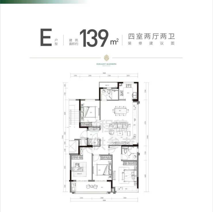 139㎡也是三开间卧室朝南,1个卧室朝北,餐客厅竖向安置,属于当下最优化的大户型设计了。