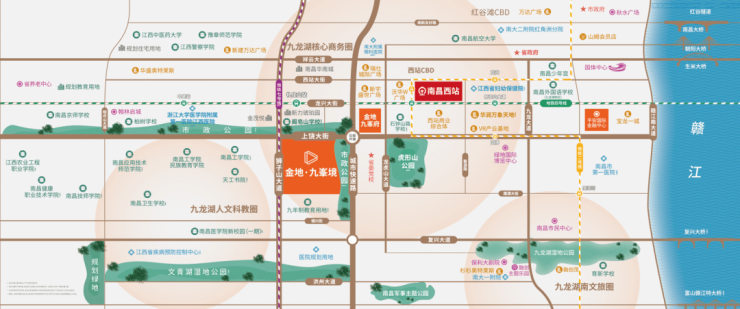 依托未来科学城规划升级,大学城组团不断推进建设,如今南昌行知中学、南昌医学院、南昌工学院、南昌卫生学院、江西农业工程学院、南昌应用技术师范学院、南昌技师学院等多所高校集中落定九龙湖,未来区域聚集人数将剧增必定将带动九龙湖区域整体发展。