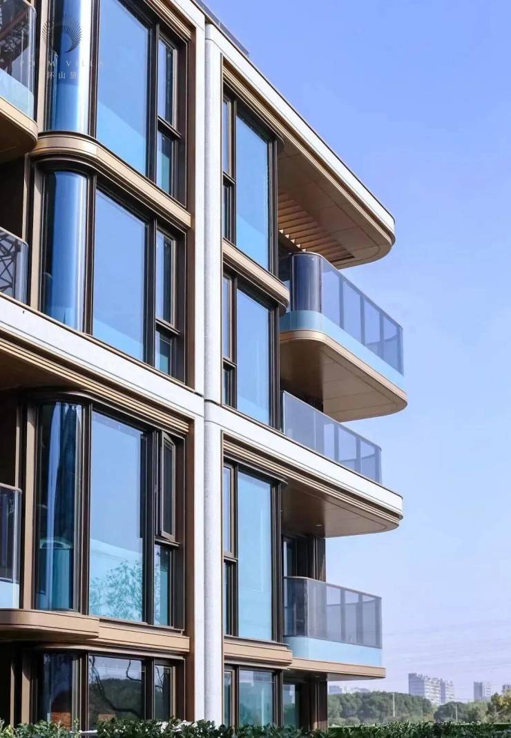 外立面甄选石材、铝板与曲面玻璃三重材质匠心匠造。石材质感温润厚重,诉说着历久弥新的价值;铝板线条轻盈流畅,勾勒出现代简约的建筑轮廓;曲面玻璃通透明亮,将室外风光引入室内,每一处细节皆彰显非凡品位。