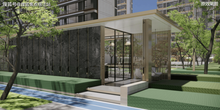 如将原景观会客厅中较为封闭的景墙进行了更为通透化的处理,使得会客厅内采光更加优越;同时根据以往项目的经验,充分考虑了会客厅内的通风需求和景观效果,首次在保利天津公司使用了上折窗的方式,增加了会客厅的通风的同时也增加了立面的趣味性和采光,消解了封闭空间的沉闷感。