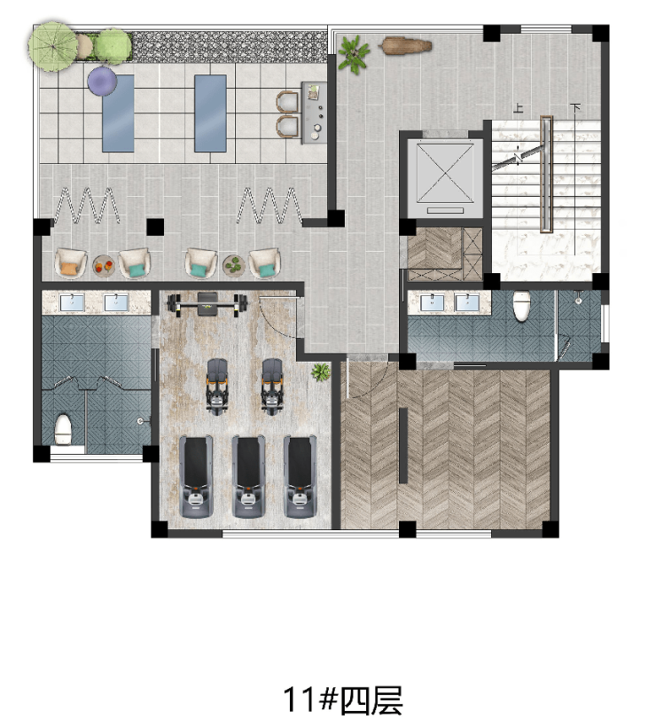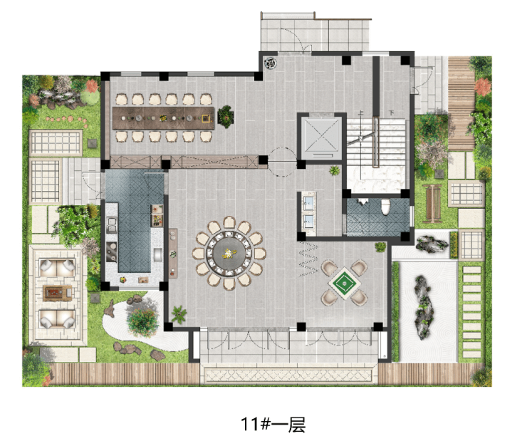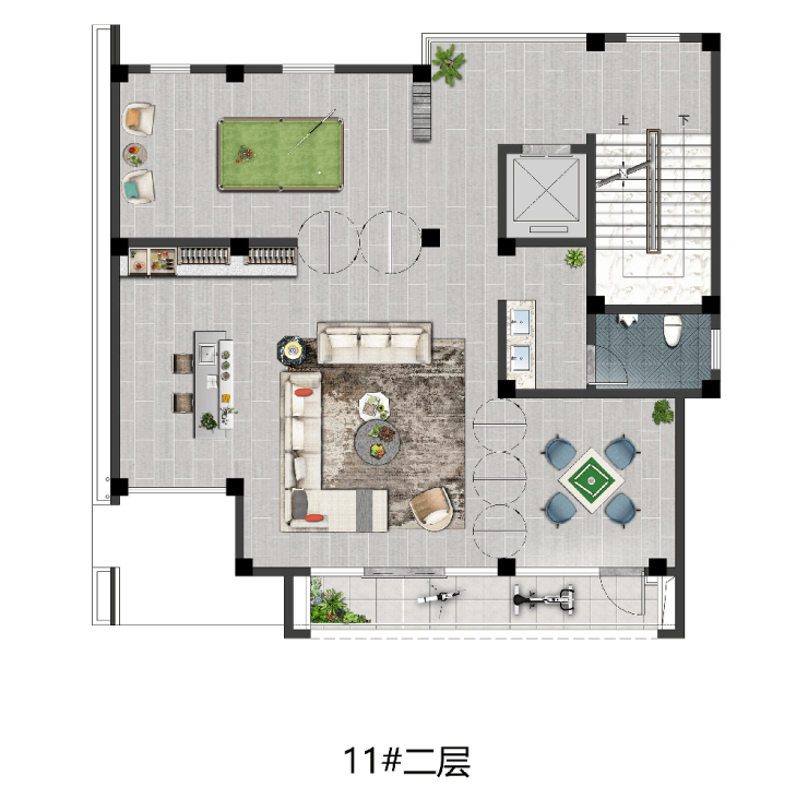 项目北侧50米,8000方商业,设立了24小时便利店、生鲜超市以及咖啡店、智能产品体验街区等轻奢业态。