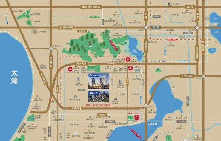 【15分钟吴中市区,30分钟园区市区】项目西沿吴中大道三分钟上中环西线,苏福快速路,南环高架直达市区,苏州三大高铁站极为便利