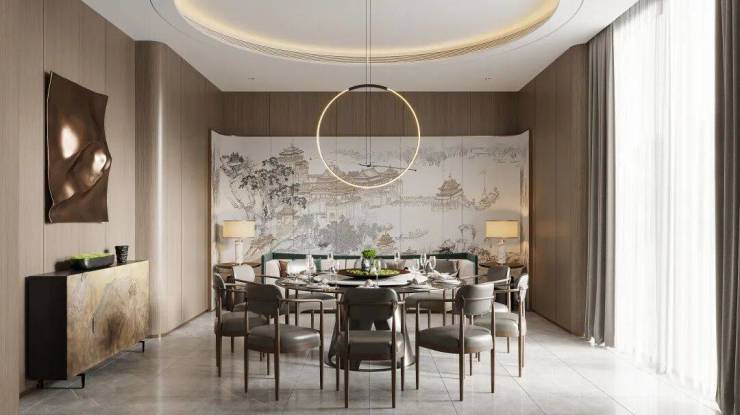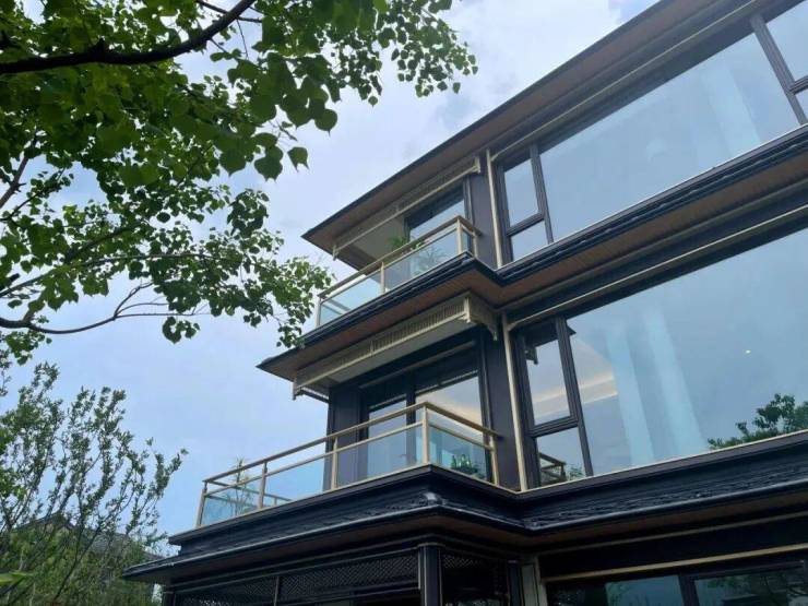 宋风本就轻逸灵动,通过大幅落地窗设计框景,让建筑融隐于远山近溪之间。