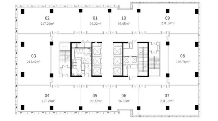 标准层:1600~1700㎡(多本产证)