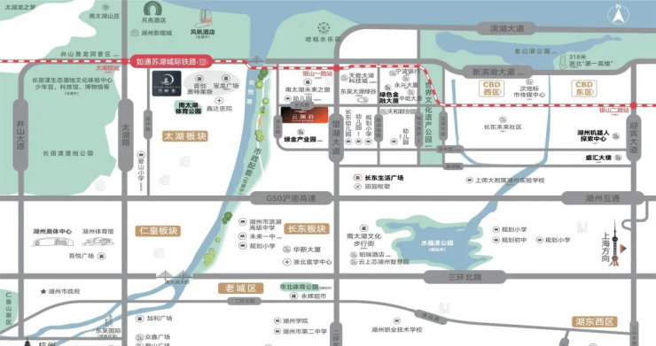 【周边学校】:湖州市南太湖幼儿园(香樟校区)、爱山小学(鹤和校区)、未来一中(规划中)、滨湖高中、上师大附属学校(规划中)