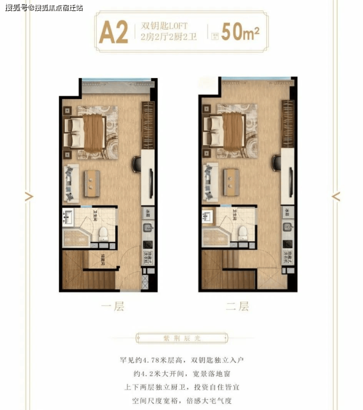 紫荆辰光此次产品主力户型约45-60㎡的双钥匙LOFT。突破性采用杭州市场上难得的约4.78米层高设计,居住舒适度大幅提升,能够真正奢享两层空间。