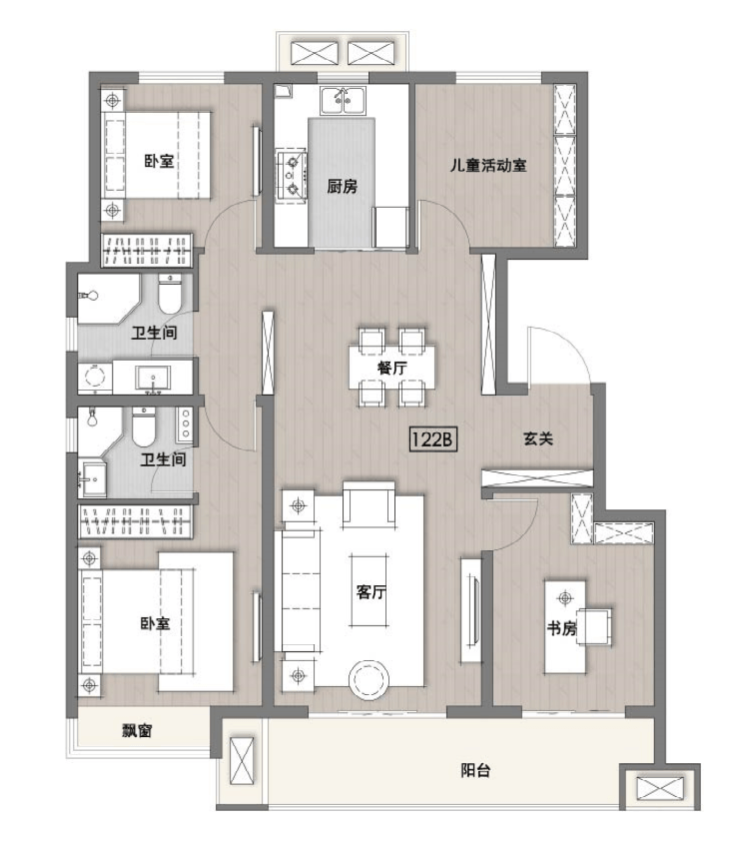 一体式联动餐客厅,享大尺度揽景飘窗,通透自然;