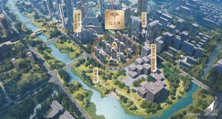 元序占位未来科技城中轴核心,三面环水的半岛天赋,与一众总部地标共筑城市天际线。银泰中心(规划)约400米,余杭国际体育中心(在建)约600米,总部集群环伺。更绝的是,元序南临阿里公园与五常湿地,出则繁华,入则自然。商业、交通、生态、产业,全维顶配。
