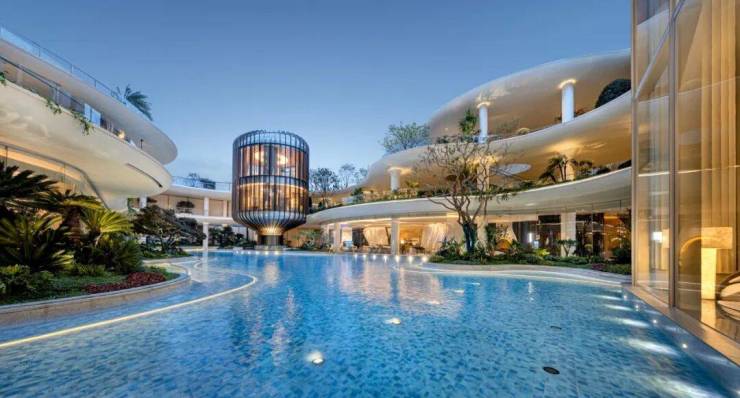 惊艳的是杭州首座三层立体水院,灵感源自美国高线公园和泰国芭提雅海滨度假酒店。约16米高差、三层的立体水瀑成为视觉核心,超2500㎡景观水系贯穿全园。不用远赴山海,归家即是度假。这种将海滨慵懒惬意搬到城市心脏的魄力,在产品力上形成了断层领先。