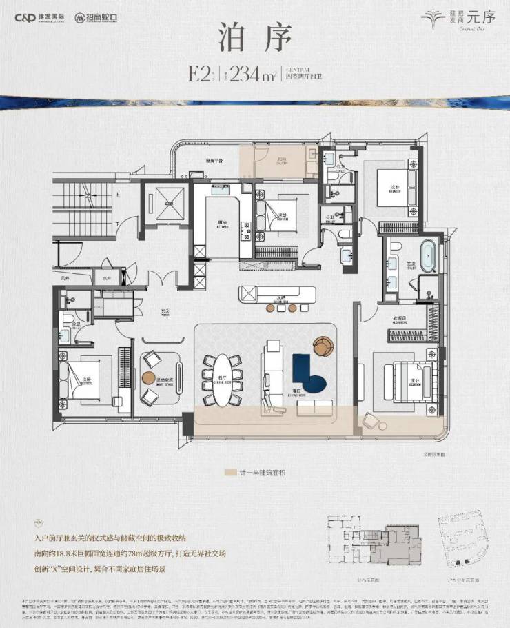 本次加推的建面约233㎡户型,占据整个园区核心景观位,堪称“皇冠上的明珠”。