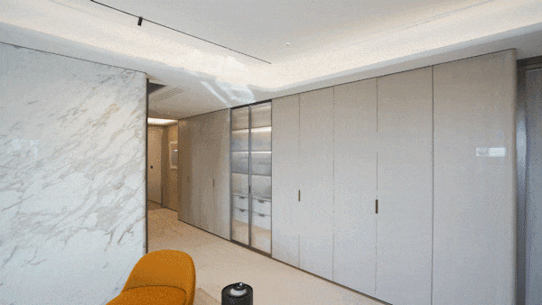 这些收纳空间分布在房间的各个角落,电视柜、餐边柜、厨房收纳、岛台收纳、家政收纳都在向极限拓展。