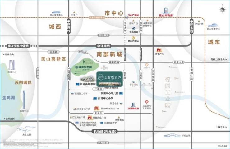 开发背景:昆山张浦城投淞南公司拿地、苏州实力国企苏州信托公司控股,由国内顶级豪宅运营商蓝城集团联合开发建设;