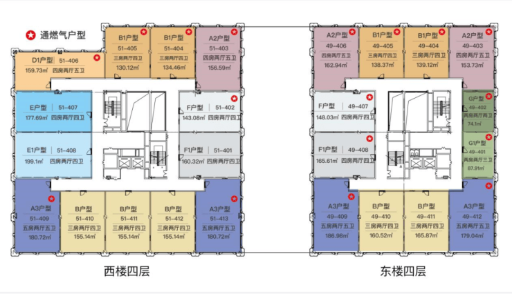 4房(三套房)+超大主卧2厨(中西厨)1厅5卫(4套卫1公卫、主卫双台盆+浴缸)