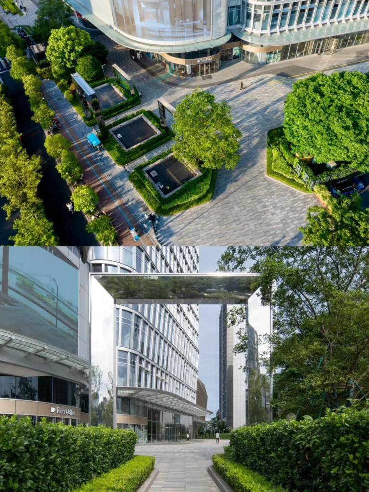•外立面:蓝灰色中空Low-E玻璃 + 浅灰色铝板,光影流转间与江岸同频呼吸