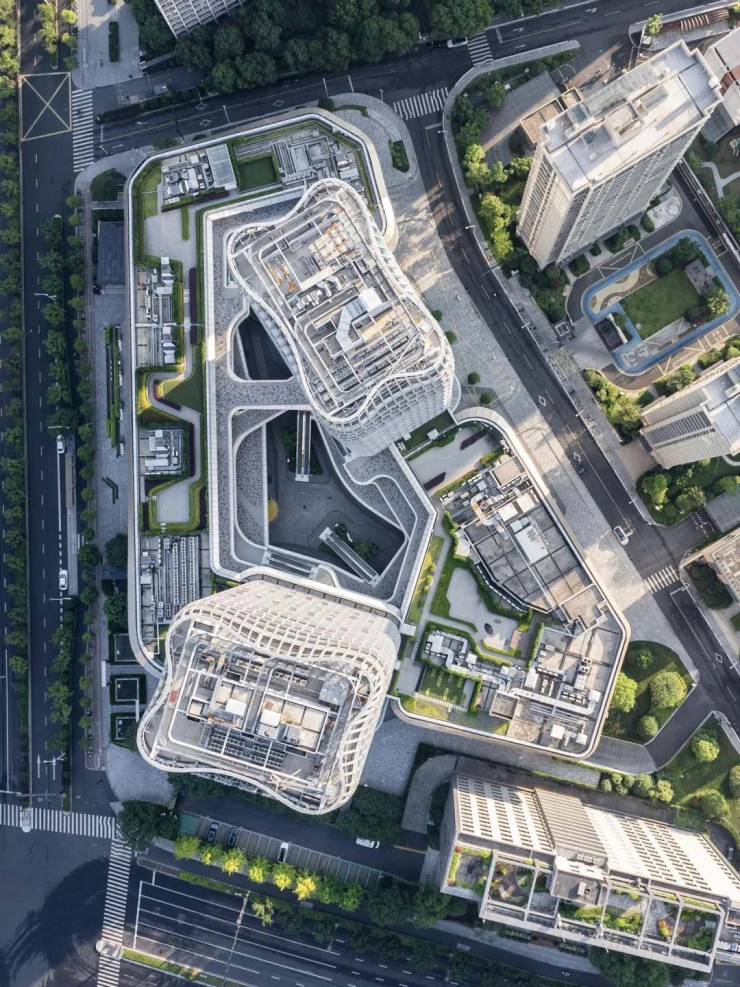 望江山由全球排名第七、拥有145年历史的伍兹贝格担纲整体设计。设计灵感源于钱塘江波纹与西湖群山曲线,塔楼圆角柔化建筑棱角,双曲塔冠提炼群山韵律,让建筑向天空温柔过渡。