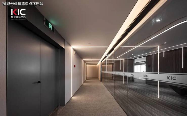 【公共走道】墙面蜂窝铝板+墙布硬包,顶面蜂窝铝板+石膏板吊顶,地面架空地板+日本进口地毯;