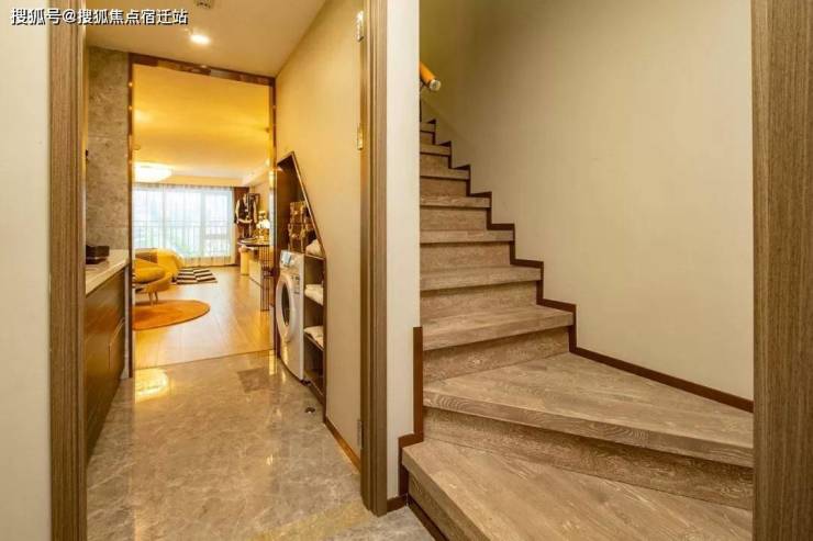 一楼和二楼都有完整的厨卫空间,「双钥匙」的基本配置之上,东港空间更进一步,还在二楼拓展了一个房间和客厅。很妙的是,它的楼梯走向刚好在二楼客厅与北向房间中间,关上门,北向房间就又成了一个独门独户的空间。打开门,还能和南向房间共用公共空间——甚至都可以算有「三钥匙」。