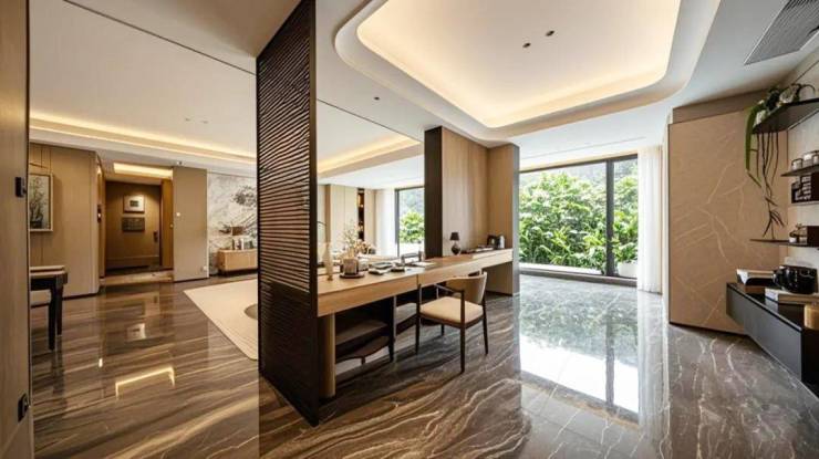 •家族式奢阔空间尺度体系:约3.1-3.5米层高,高通透性、高舒适度,以及更高级的空间气质