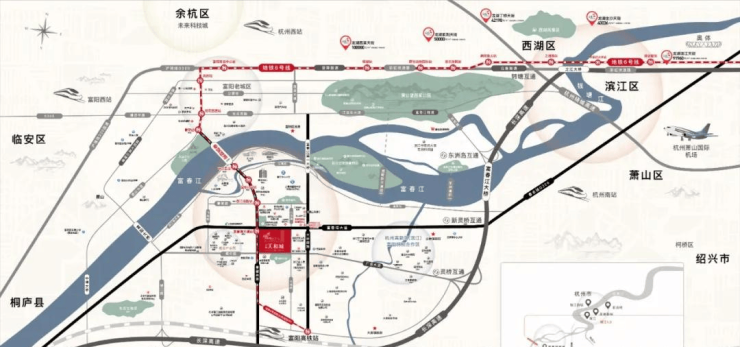 在这里,你不仅可以享受到天街住宅一体化的超级商业流量,还可以与20万+常住客流共享繁华。同时,TOD枢纽一体化的超级地铁流量,更是为这里带来了源源不断的客流。滨江天街同款6号线地铁口的设计,让这里成为了富阳高铁的联通枢纽。