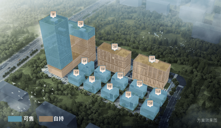 中国安谷,由4幢高层、10幢花园独栋组成,共14幢生产+办公一体化空间,满足企业生产、办公、研发等多重个性化需求。