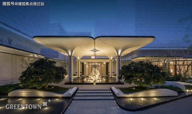 整石切割的门头水景石材、奢石雕刻的电梯厅墙面,以浑然天成的细腻质感,于潜移默化中彰显价值与品位;标志性的芝兰玉树,从2:1到2.6:1进行比例迭新,架空层与街区创新融和,让空间体验更加充满“生息”。
