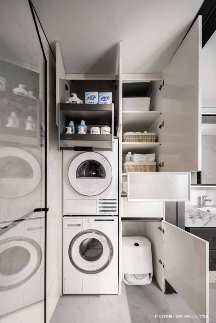 √家政模块之满配关键词:独立家政中心,让家务高效轻松。家政模块通过独立空间和专业设备,让家务变得高效轻松。其中,独立家政间(165m²、190m²、240m²户型),配备洗烘一体机、洗衣池、储物柜、操作台等;124m²户型升级赠送洗烘一体机,打造便捷家政空间。该模块通过独立的空间、专业的设备和人性化的设计,大幅提高家务效率。