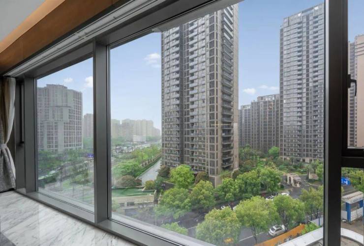 站在落地窗前俯瞰,南侧便是锦绣之城的中轴大花园,交付四年多,依旧如仪仗般大气规整。即使几年来身边新秀迭出,但它仍以超9万的二手成交价,领衔申花。