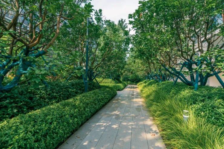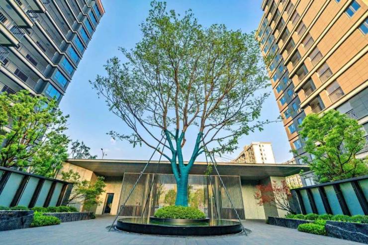 全冠移植、超过3米的树种数量很多,你很难想象这丰富的植被数量是一个刚刚交付的楼盘!