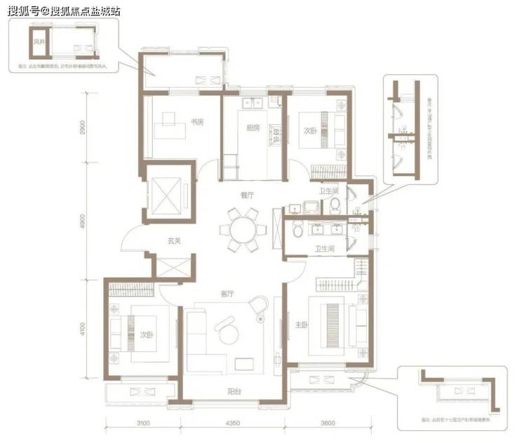 约4.35米客厅开间,采光视野极佳。