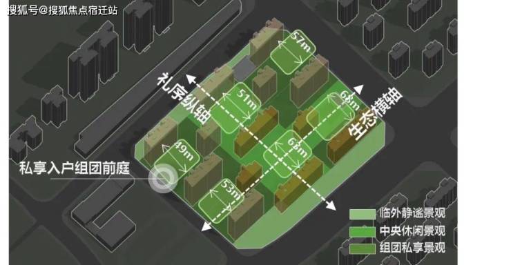 这样排布的优点是每一栋楼都能达到最好的朝向,在通风和采光上达到最佳状态。