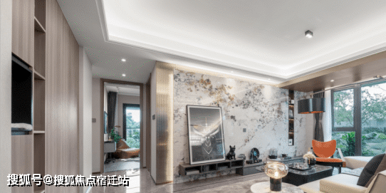 采用金属线条与仿木漆搭配涂料,把自然山水搬进家里,自然与建筑的完美融合。