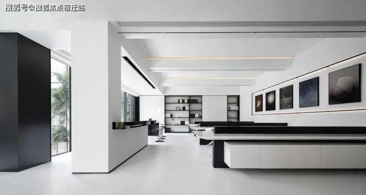 2-3层是精英办公场域,约3.8米层高,空间通透,作为点睛之笔,竖向垂直花园和顶楼“取景框”,让花园绿植延伸至眼前,目之所及,青绿怡人,灵感涌现,从容开阔。